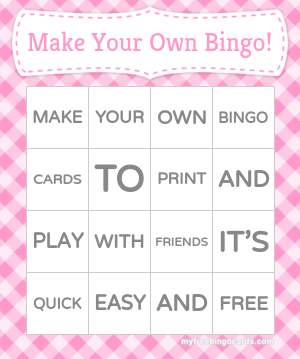 MAKE UP Bingo Cards to Download, Print and Customize! from www.buzzbuzzbingo.com Bingo baker has thousands of bingo cards you can use for any occasion. For each bingo card you plan to make, you should designate a sheet for staging that card. Our bingo card generator randomizes your words or numbers to make unique, great looking bingo cards. Enter your bingo card title, choose a size, and type your words into the squares. Number of squares wide number of squares tall printing options. Bingo cards, list of 80 words. Whoops, looks like you forgot to give your bingo card a title like animal bingo cards or spanish word bingo. please fill the title field in so you can print. To begin, choose how many words will fit on one card by changing the number of rows or columns below.